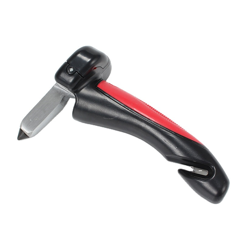 Det fungerar också som nödhammare för att slå sönder bilrutan vid en olycka – och har dessutom en inbyggd ficklampa som hjälper dig i mörkret.